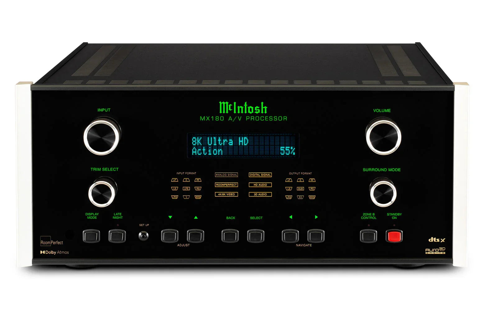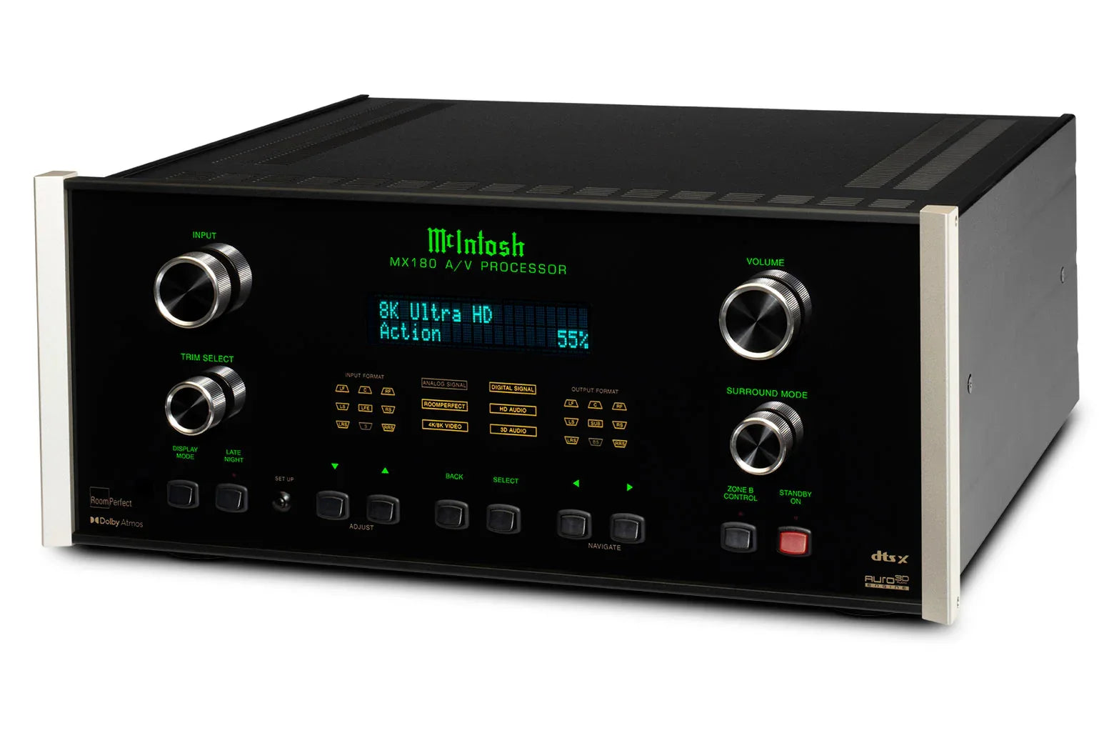 The McIntosh MX180 A/V Processoris engineered to be the cornerstone of a high-end home theater system, providing cutting-edge audio and video processing capabilities. It seamlessly blendsMcIntosh's iconic design with the latestin technological advancements to deliver an unparalleled cinematic experience.