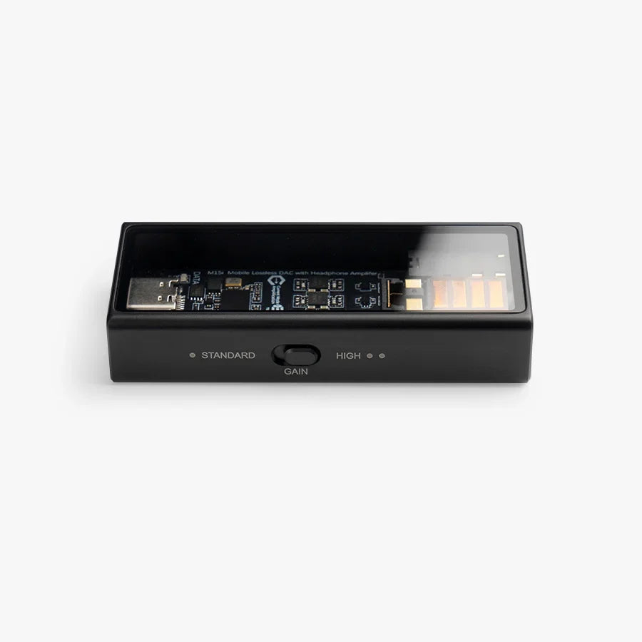 The M15i is equipped with dual output modes, and features a manual gain adjustment to match any headphone or audio system, making it suitable for a wide range of devices.
