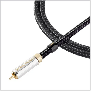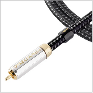 All Series 8 audio cables are meticulously assembled by hand in Orlando, Florida. Series 8 Mark II subwoofer mono cables are optimally designed to work in Low Frequency Effects (LFE) Subwoofer outputs of a pre-amp or receiver. The Series 8 design starts with extremely high grade linear crystal copper (LC-OFC) developed specifically for audio applications. Tributaries LC-OFC is carefully drawn to produce a low crystal volume per foot resulting in less signal loss and distortion. Conductors consist of multiple solid gauges that are mathematically and tonally chosen to support lower, upper and mid-bass frequency ranges for a dynamic bass sound. Individually insulating each conductor yields zero strand interaction and better sound quality. The precision-twisted Twin-Axial design has dedicated conductors for the positive signal and negative return signal plus a heavy shield that is connected to the source end only. In this design the shield will capture any induced interference sending it to ground at the source end thereby isolating noise away from the input stage of the load. This configuration ensures a clear signal transfer with overall noise rejection. The Mark II cables are silver soldered onto proprietary RCA connectors made with Tellurium (TE) copper contacts increasing conductivity and strength. The end result is a dead-quiet cable that accurately produces a dynamic bass sound.