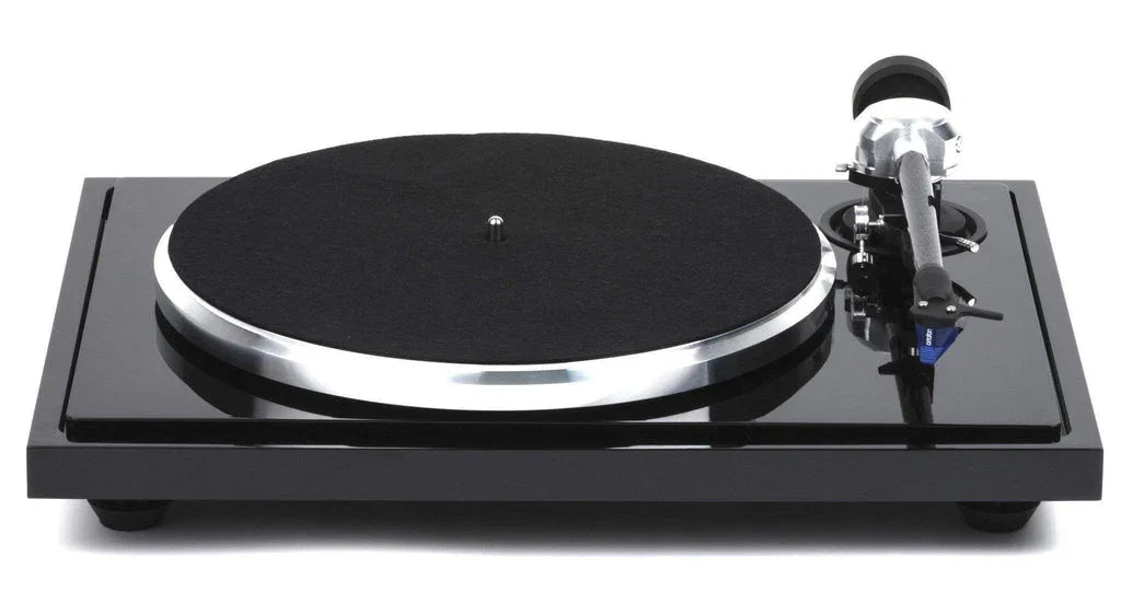 The B-Sharp Package includes: A factory installed B-Note Tonearm with an Ortofon 2M Blue Cartridge, a hinged dustcover, low mass aluminum record clamp, and a felt platter mat.