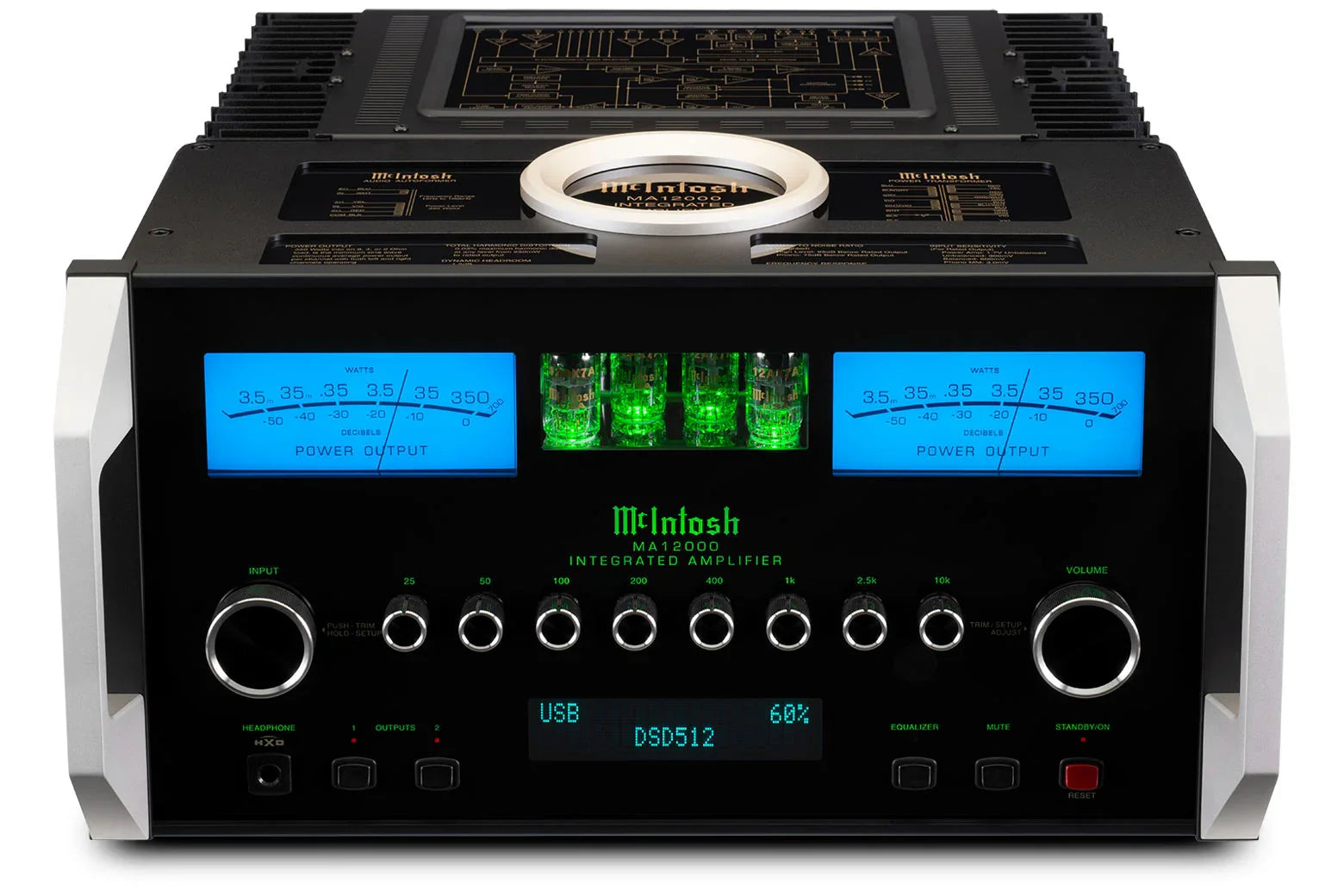 This hybrid amplifier incorporates a vacuum tube preamplifier section with four 12AX7A tubes that enrich the audio signal with warmth and musicality. The solid-state power amplifier section delivers a substantial 350 watts per channel into 8 ohms, capable of driving a wide range of speakers. The inclusion of McIntosh's Autoformer technology guarantees that the maximum power output is consistently available regardless of speaker impedance.
